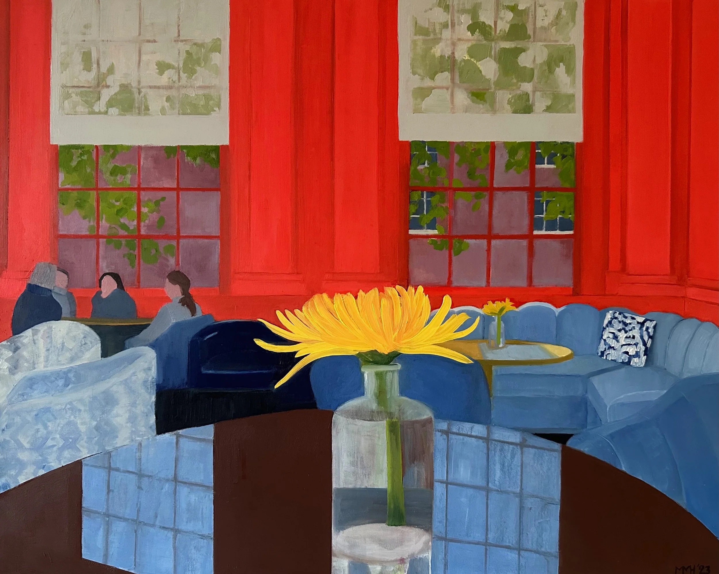 Coral Room, Bloomsbury, 2023, oil on panel, 16 x 20”